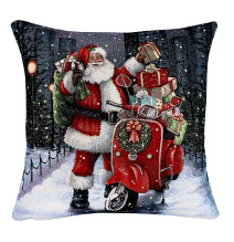 Vánoční gobelínové povlečení na polštář – Santa Claus na skútru s dárky