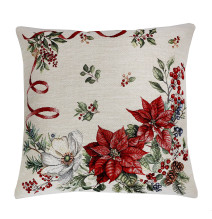 Vánoční gobelínové povlečení na polštář s lurexem – vánoční květiny a větvičky